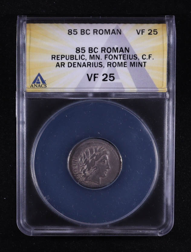 Mn. Fonteius C.f. Moneyer (85 B.C.) Roman Republic AR Denarius Rome Mint Ancient Coin (ANACS VF25)