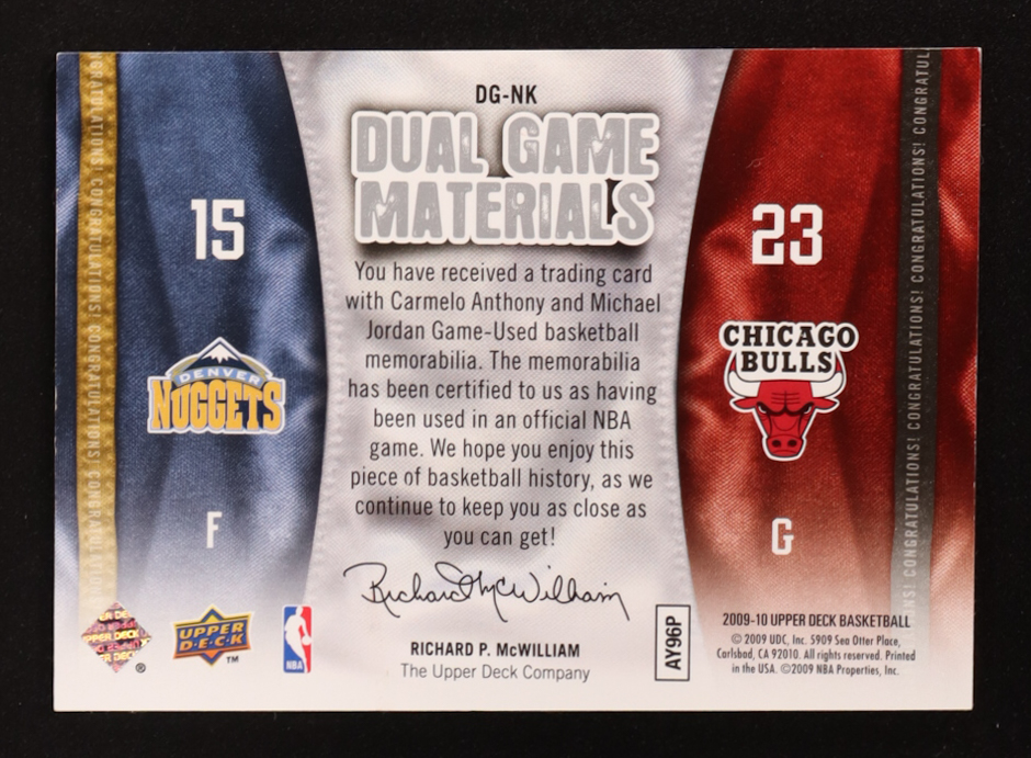 Carmelo Anthony / Michael Jordan 2009-10 Upper Deck Game Materials Dual #DGNK