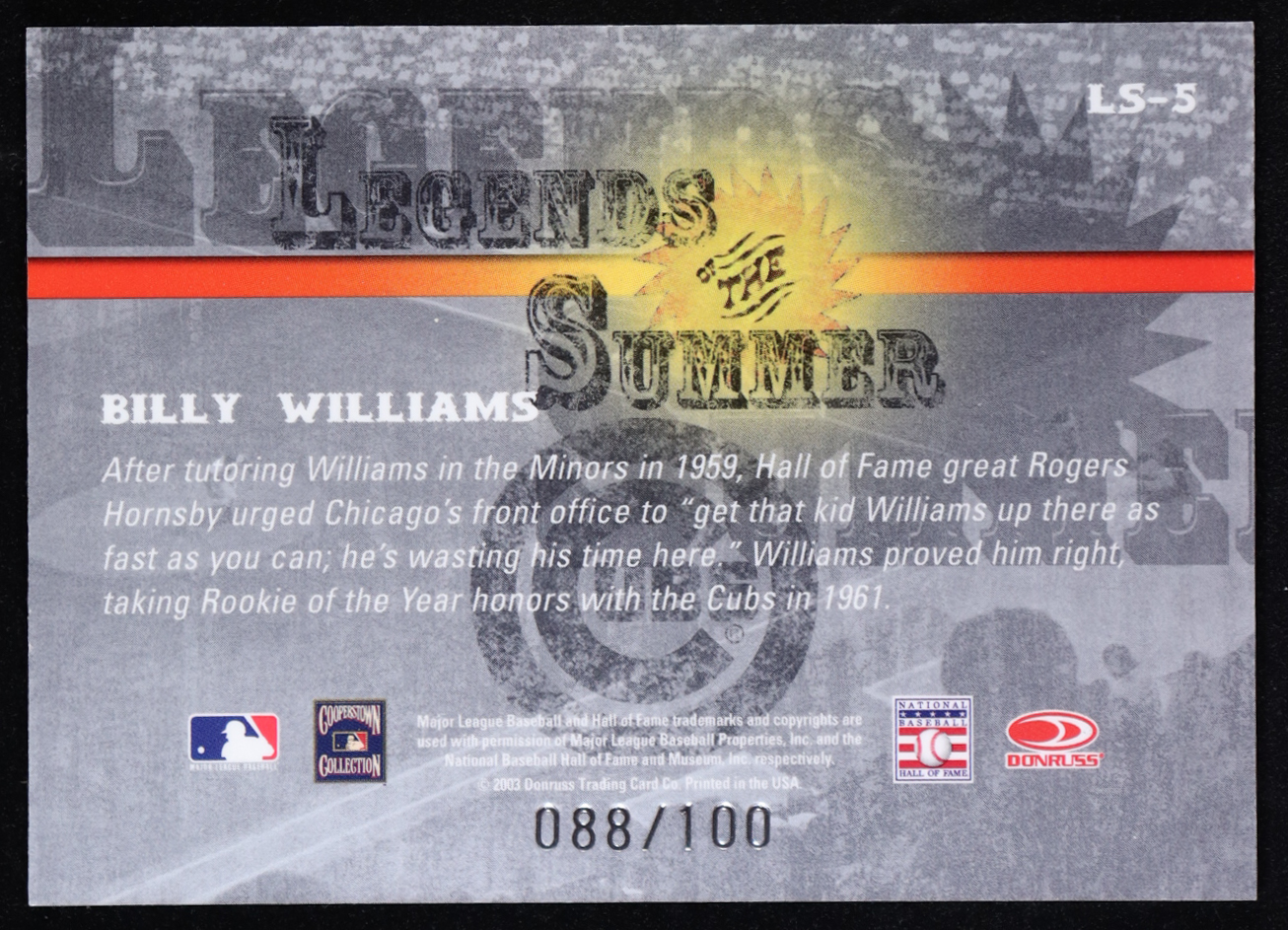 Billy Williams 2003 Donruss Signature Series Legends of Summer Autographs #5 #088/100