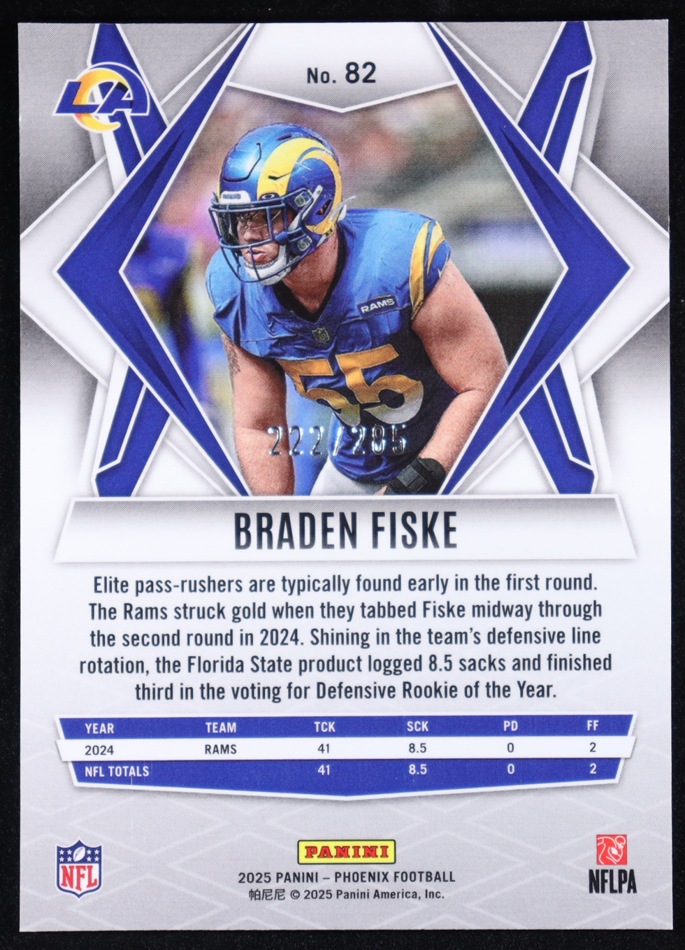 Braden Fiske 2025 Panini Phoenix Lime Green Pyramids #82 #222/285