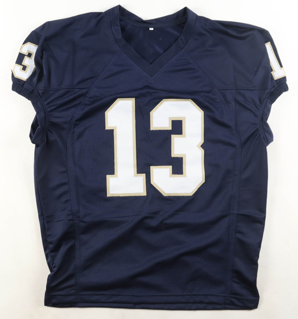 Custom jersey with everything sewn on, size XL. Hand-signed by Riley Leonard.