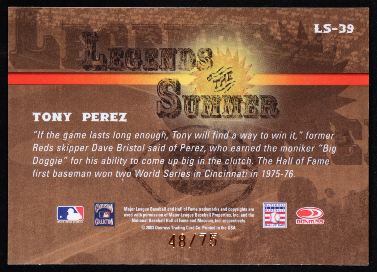 Tony Perez 2003 Donruss Signature Series Legends of Summer Autographs Notations WS76 #39D #48/75