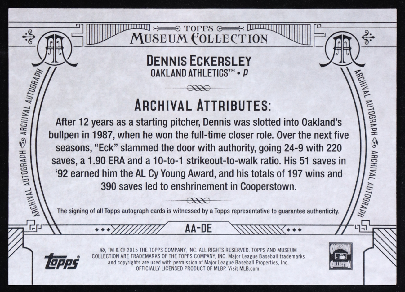 Dennis Eckersley 2015 Topps Museum Collection Archival Autographs #AADE #12/99