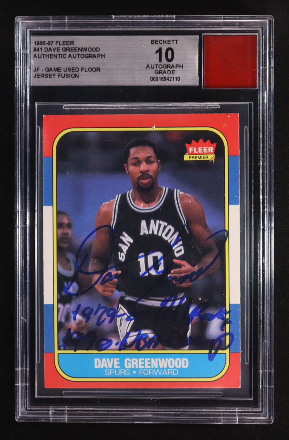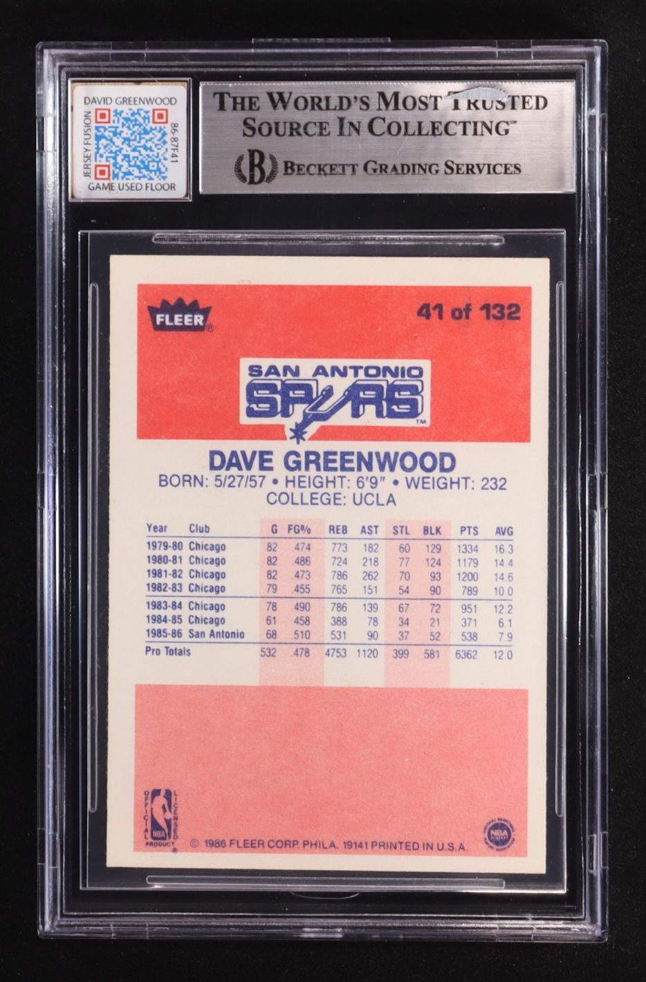 Dave Greenwood Signed 1986-87 Fleer #41 with Game-Used Floor (BGS | Autographed Graded 10)