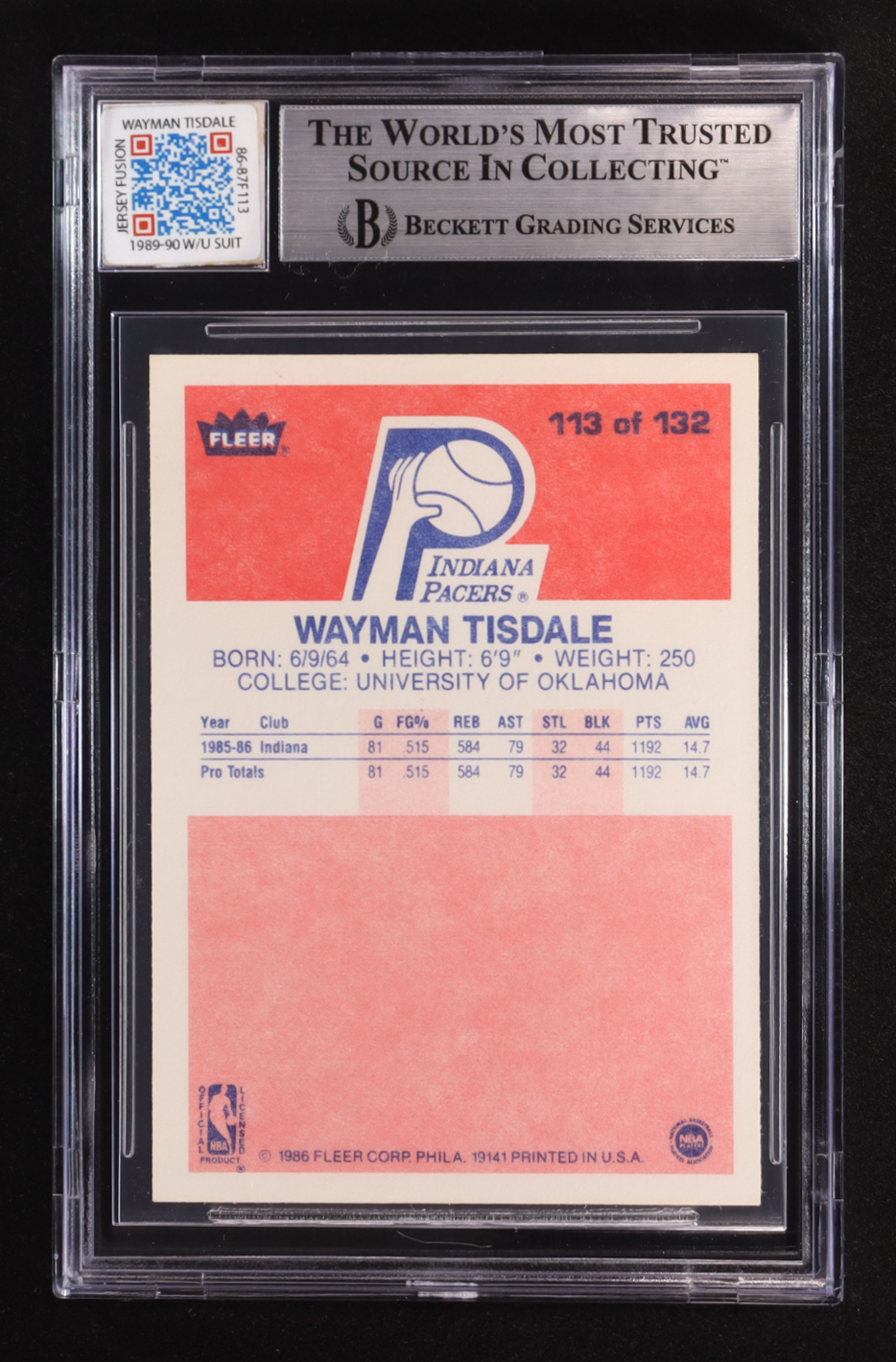 Wayman Tisdale Signed 1986-87 Fleer #113 RC with Game-Used Patch (BGS | Autographed Graded Authentic)