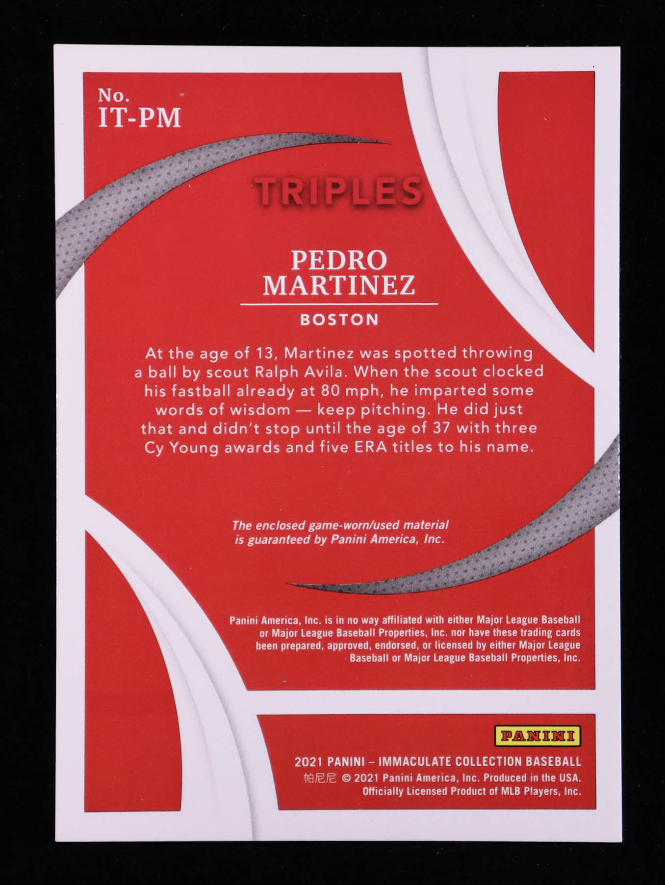 Pedro Martinez 2021 Immaculate Collection Immaculate Triples Memorabilia Blue #15 #09/25
