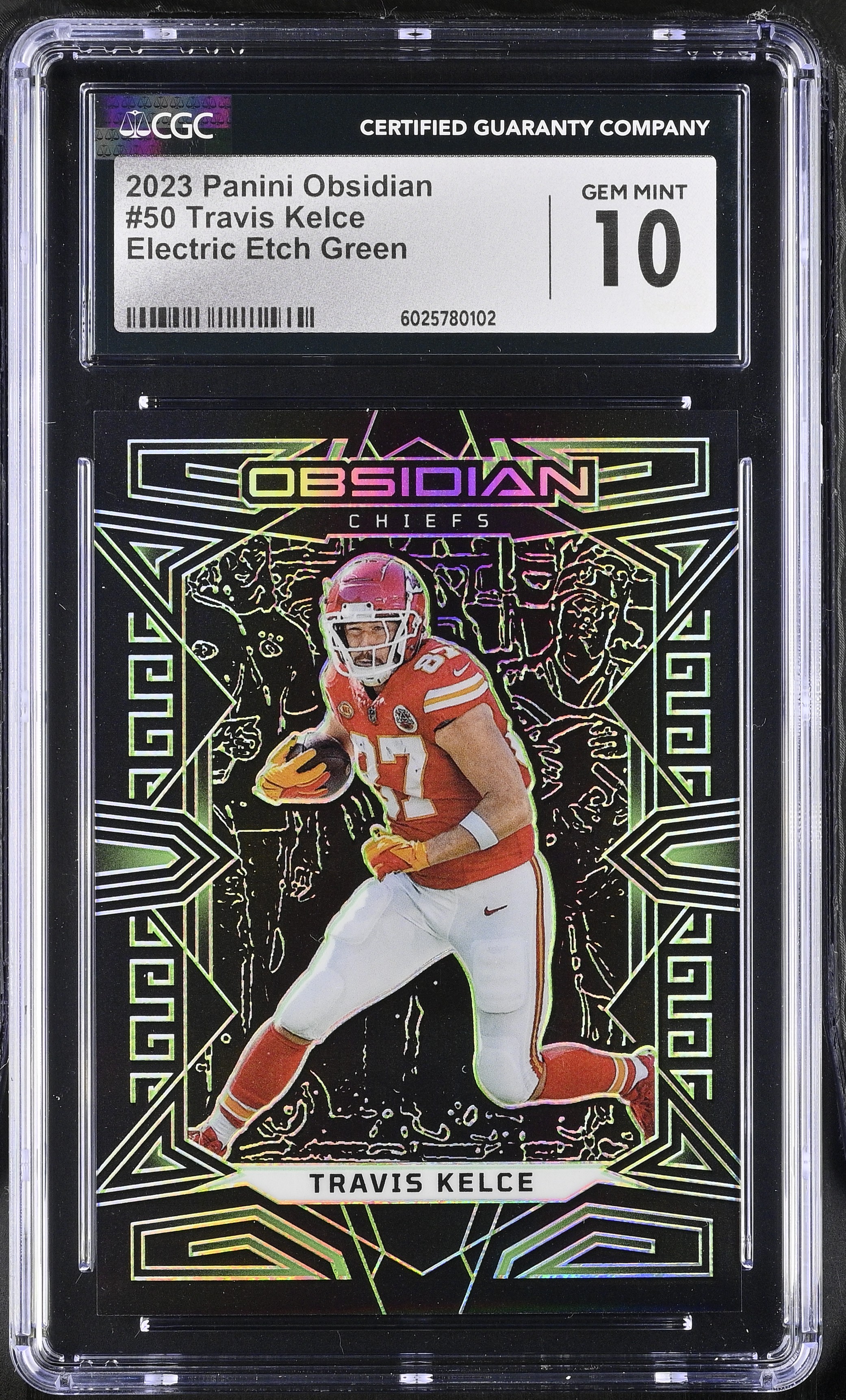Travis Kelce 2023 Panini Obsidian Electric Etch Green #50 #11/25 (CGC 10)