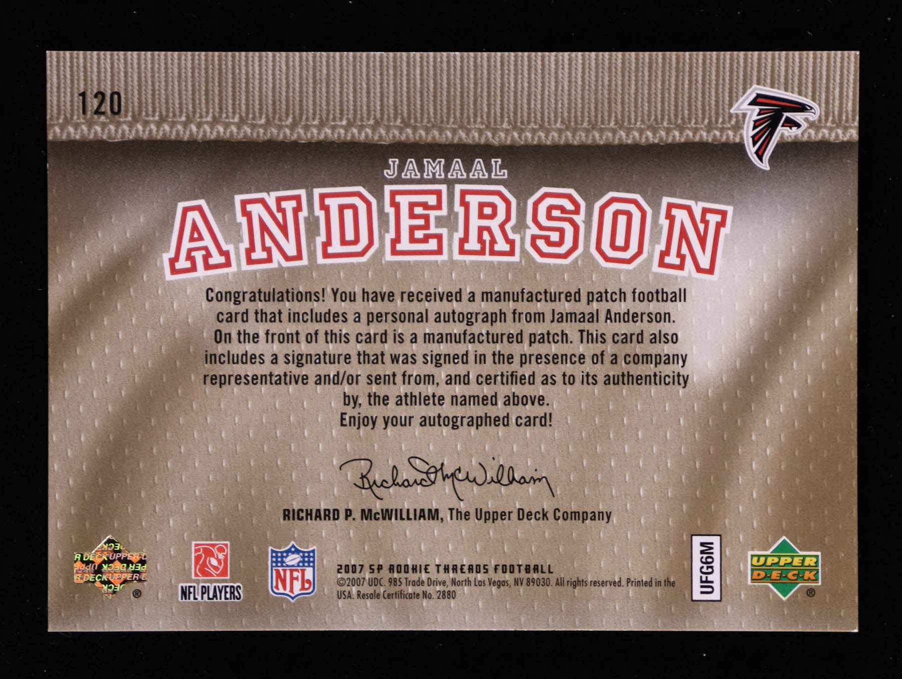 Jamaal Anderson 2007 SP Rookie Threads Rookie Lettermen Silver #120 AU RC #089/199