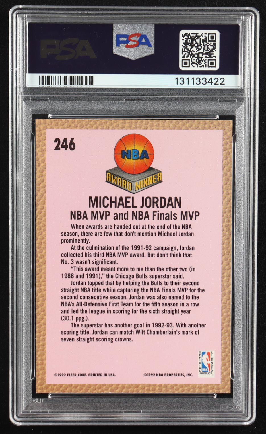 Michael Jordan Michael 1992-93 Fleer #246 MVP (PSA 9)