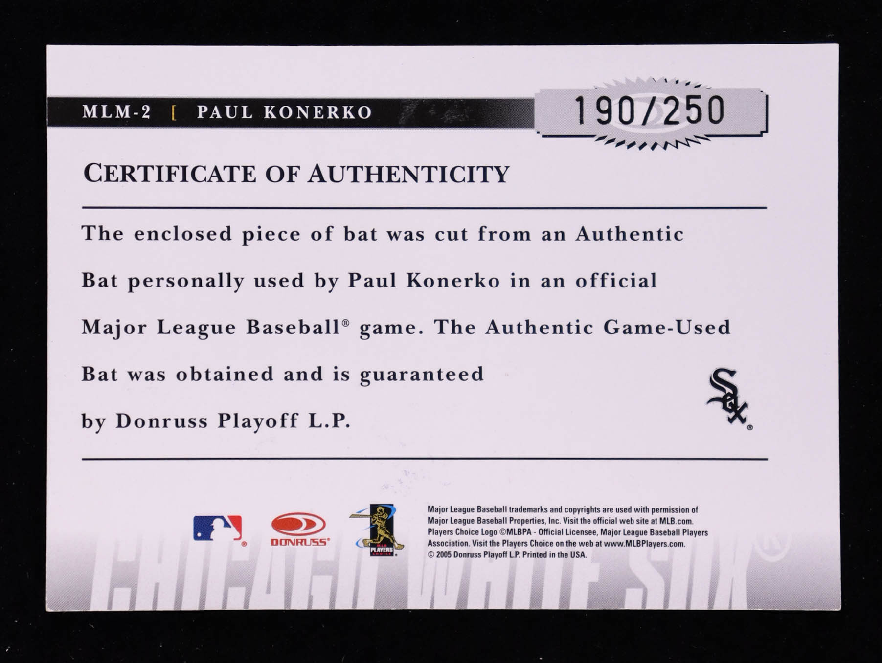 Paul Konerko 2005 Prime Patches Major League Materials Autograph Bat #2 #190/250