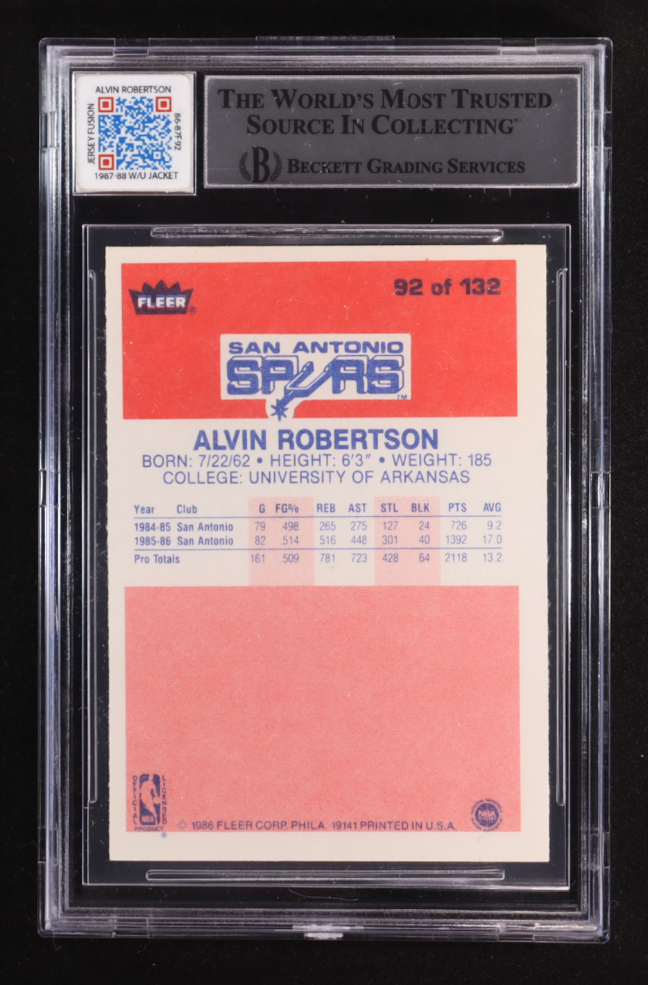 Alvin Robertson Signed 1986-87 Fleer #92 RC with Game-Used Patch (BGS | Autographed Graded 10)