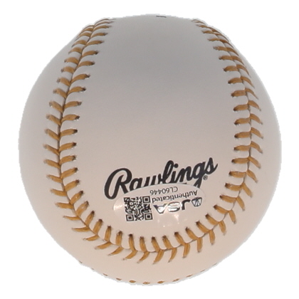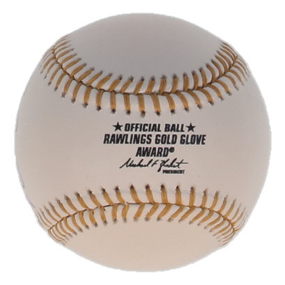 Rawlings Official Gold Glove Award Logo baseball. Hand-signed by Michael Young (Texas Rangers).