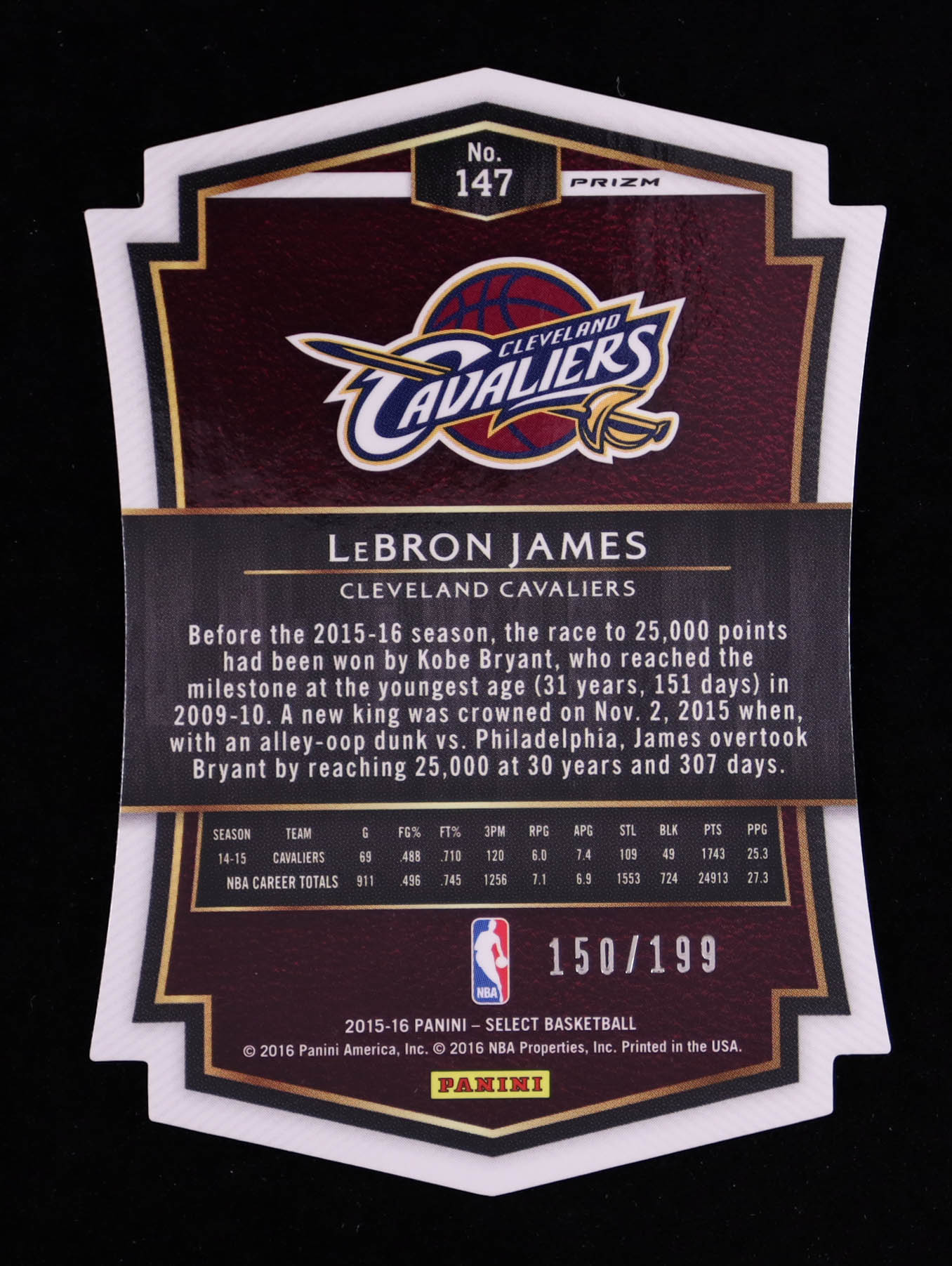 LeBron James 2015-16 Select Premier Prizms Light Blue Die Cut #147 #150/199