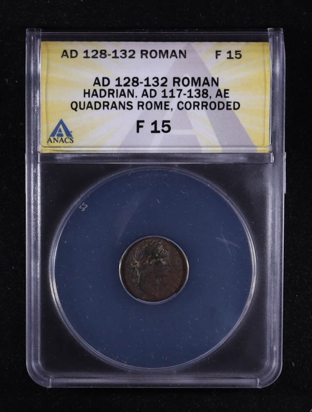 Hadrian (A.D. 128-132) Roman Empire AE Quadrans Rome Mint Ancient Coin (ANACS F15, Corroded)