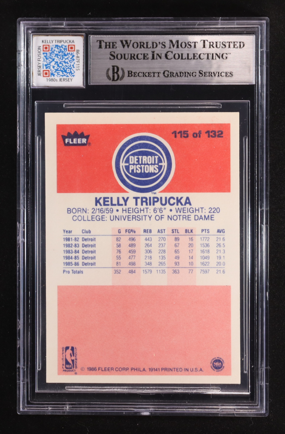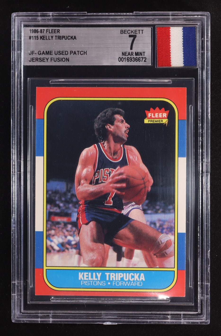 Kelly Tripucka 1986-87 Fleer #115 RC with Game-Used Patch (BGS 7)