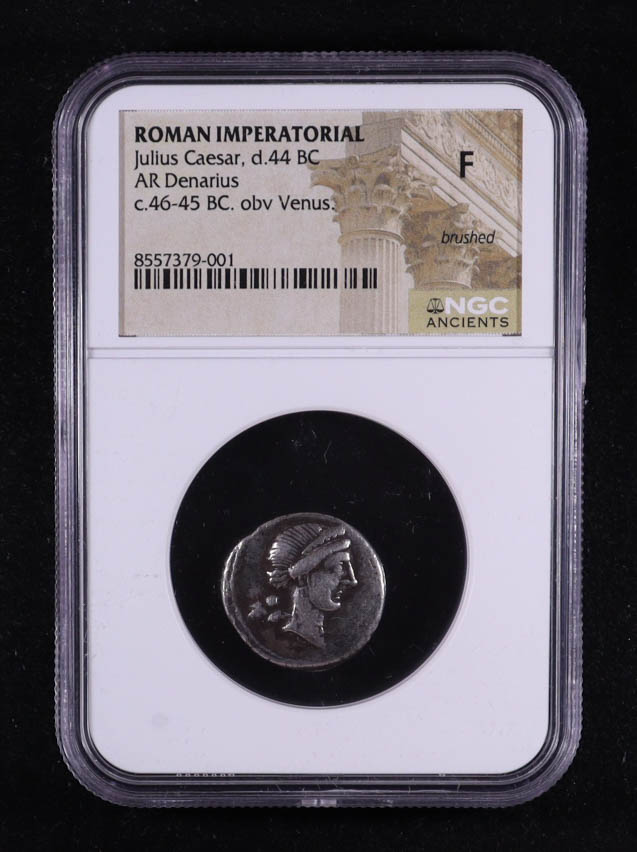 Julius Caesar (c.46-45 B.C.) Roman Imperatorial AR Denarius Ancient Silver Coin - Obv Venus (NGC F Brushed)