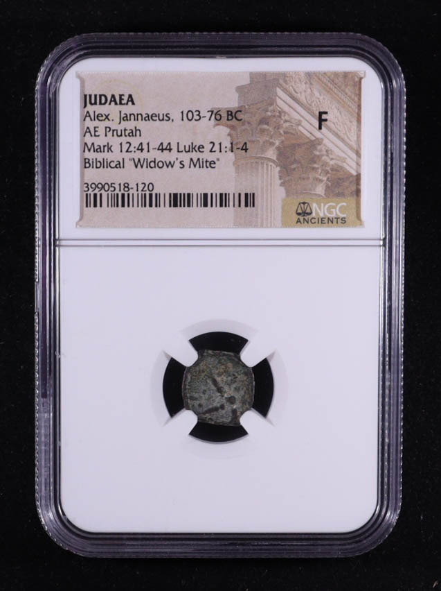 Alex. Jannaeus (103-76 B.C.) Judaea AE Prutah "Biblical Widow's Mite" Ancient Coin (NGC F)