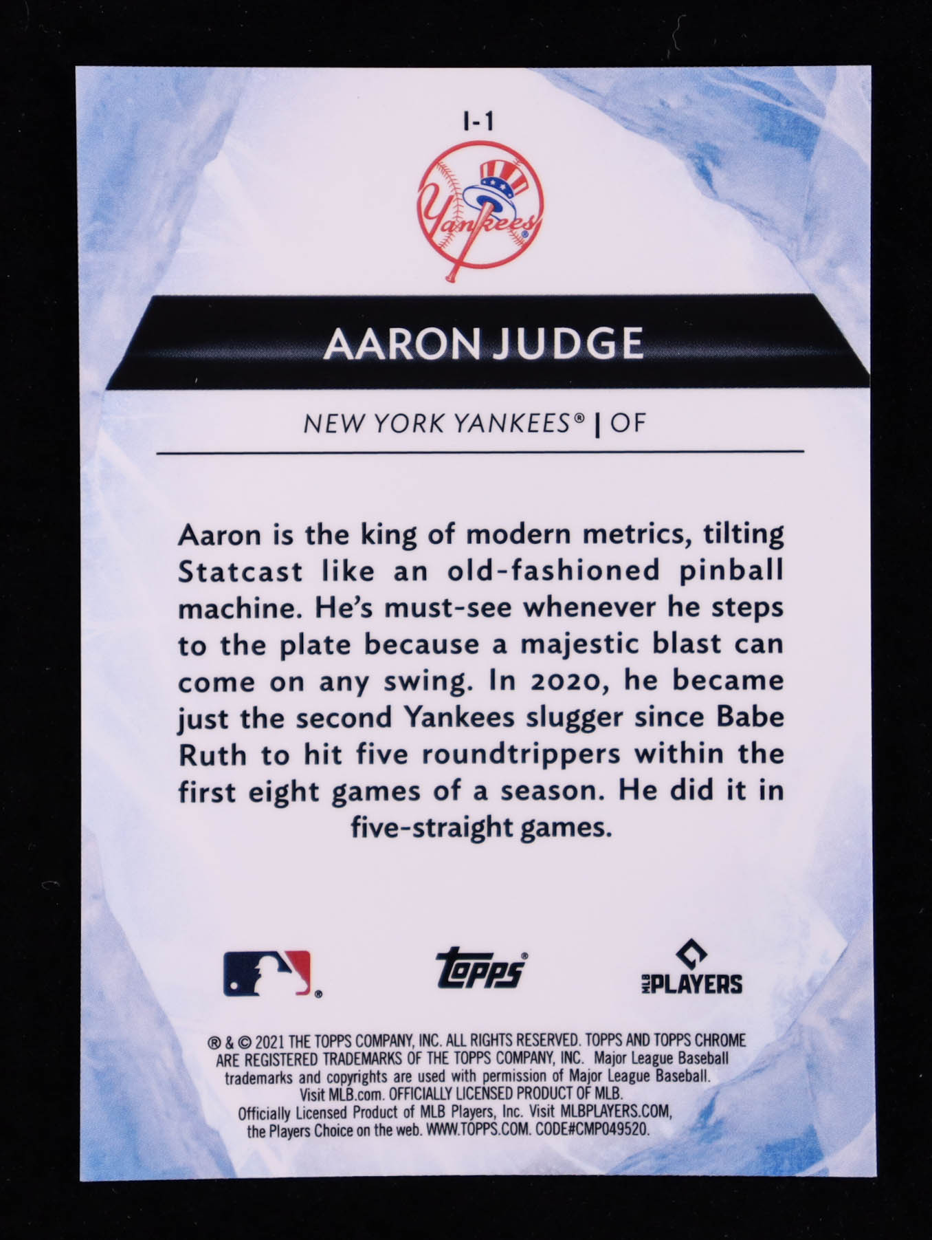 Aaron Judge 2021 Topps Chrome Ben Baller Icy #I1