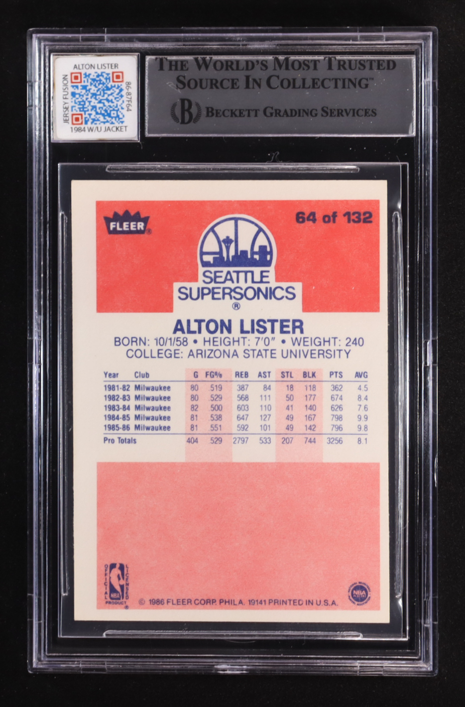 Alton Lister Signed 1986-87 Fleer #64 with Game-Used NBA Logo (BGS | Autographed Graded 10)
