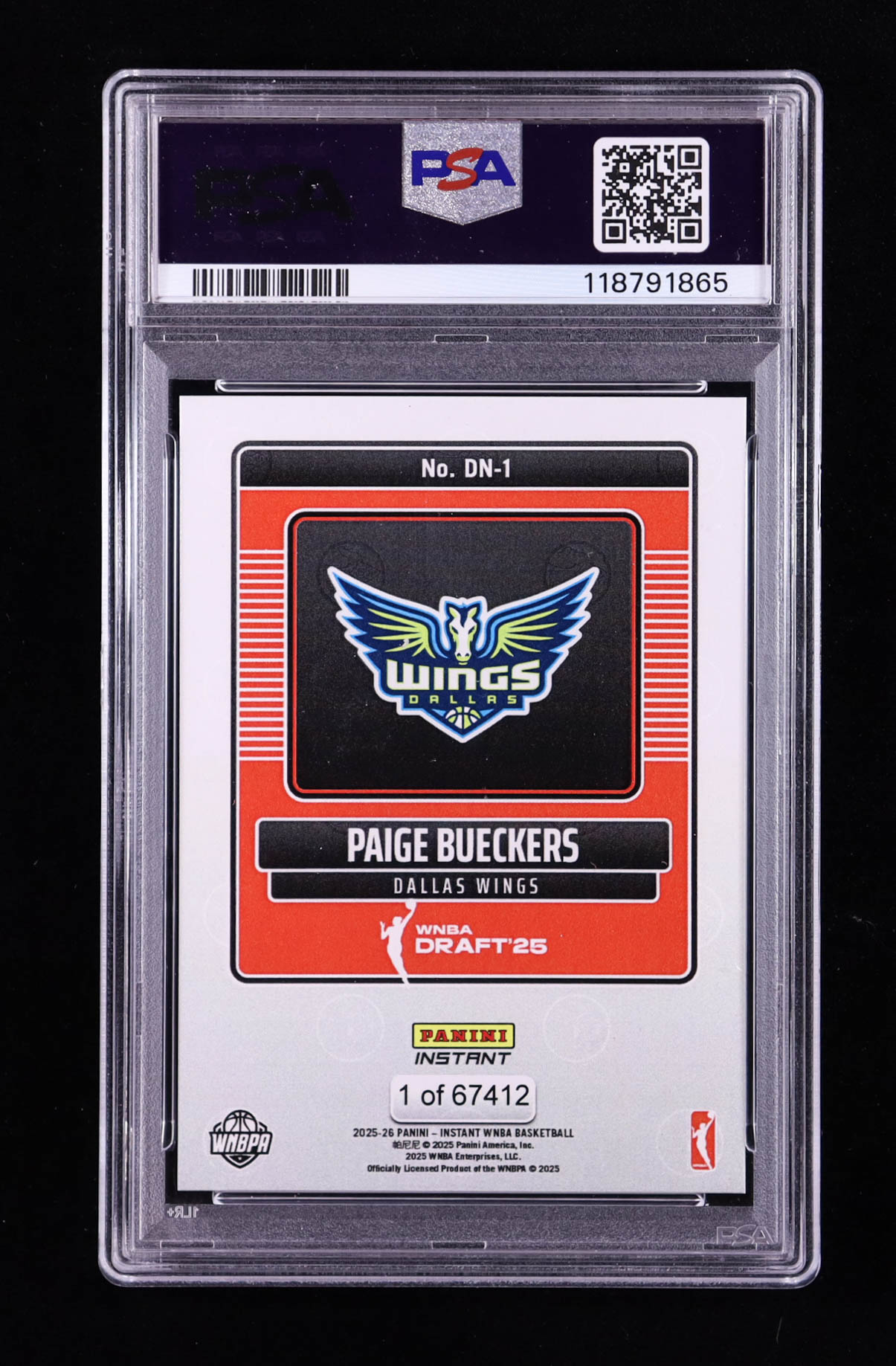 Paige Bueckers 2025 Panini Instant WNBA Draft Night #DN1 RC (PSA 9)
