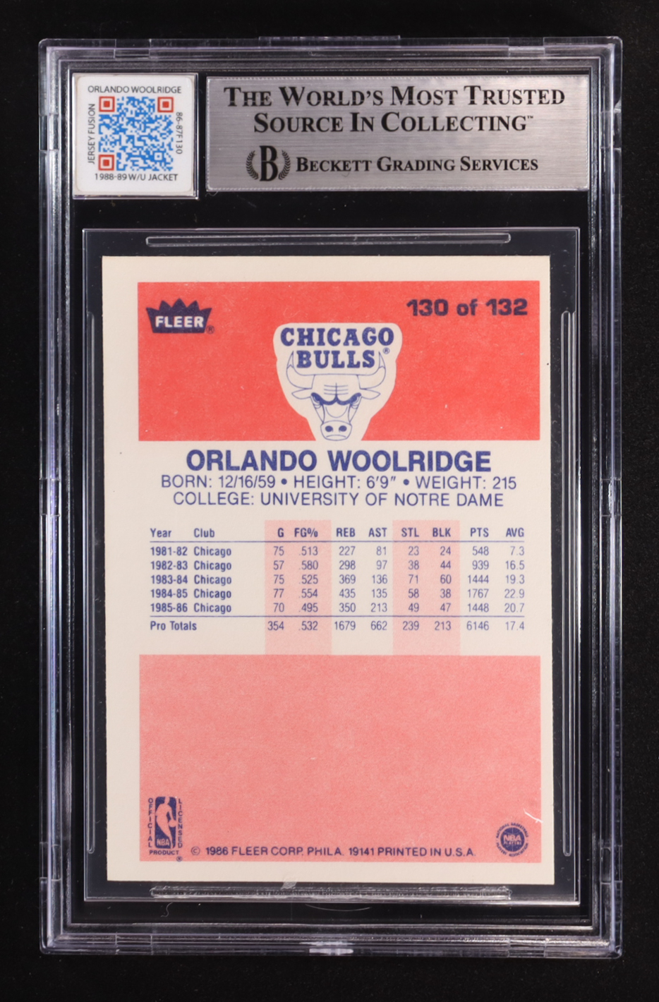 Orlando Woolridge 1986-87 Fleer #130 RC with Game-Used Patch (BGS Authentic)