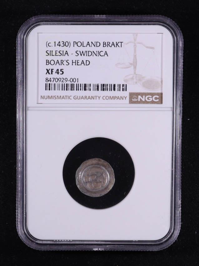 (c.1430) Poland, Silesia-Swidnica Brakt Silver Coin, Boar's Head (NGC XF45)
