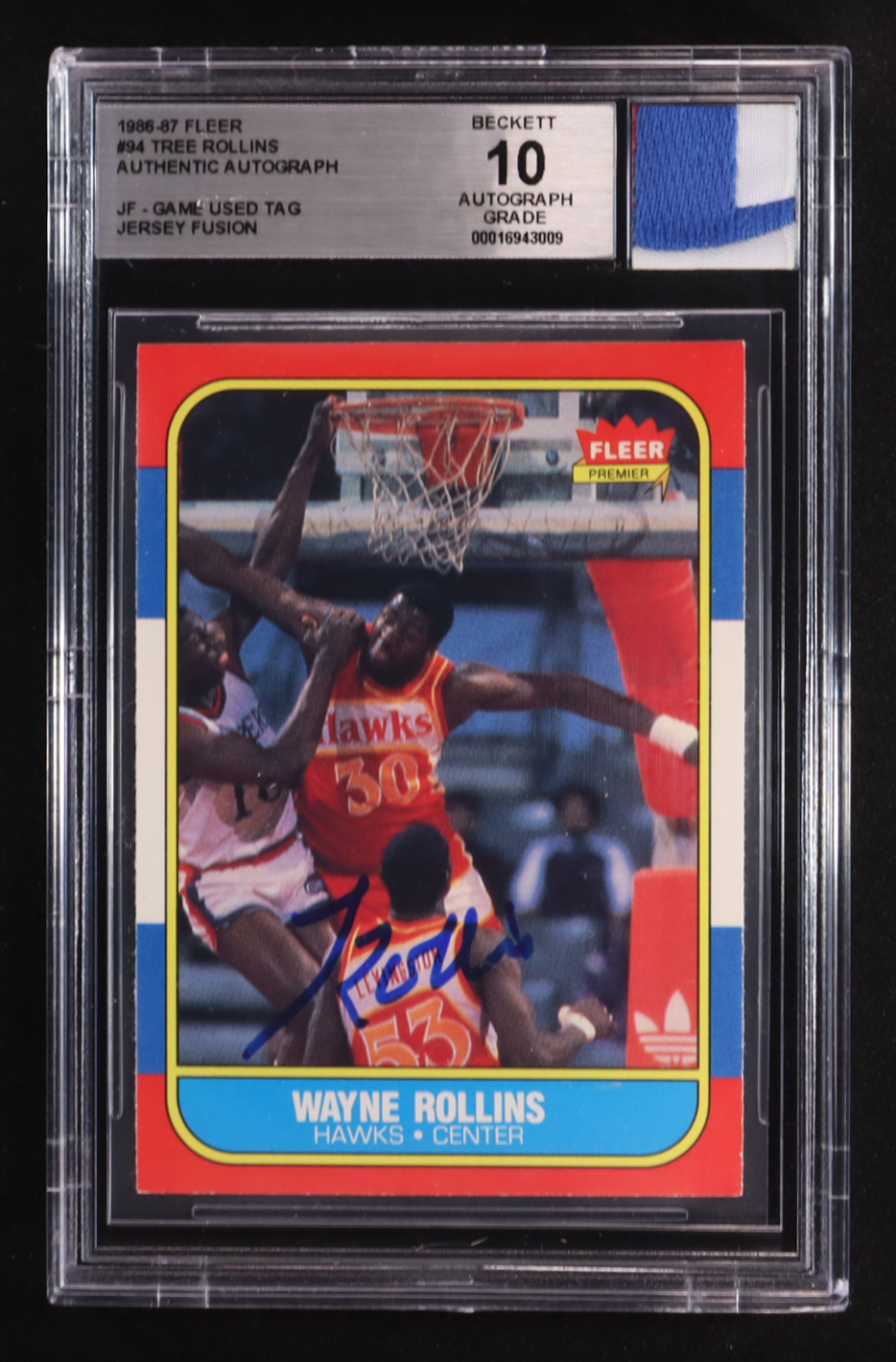 Tree Rollins Signed 1986-87 Fleer #94 with Game-Used Tag (BGS | Autographed Graded 10)