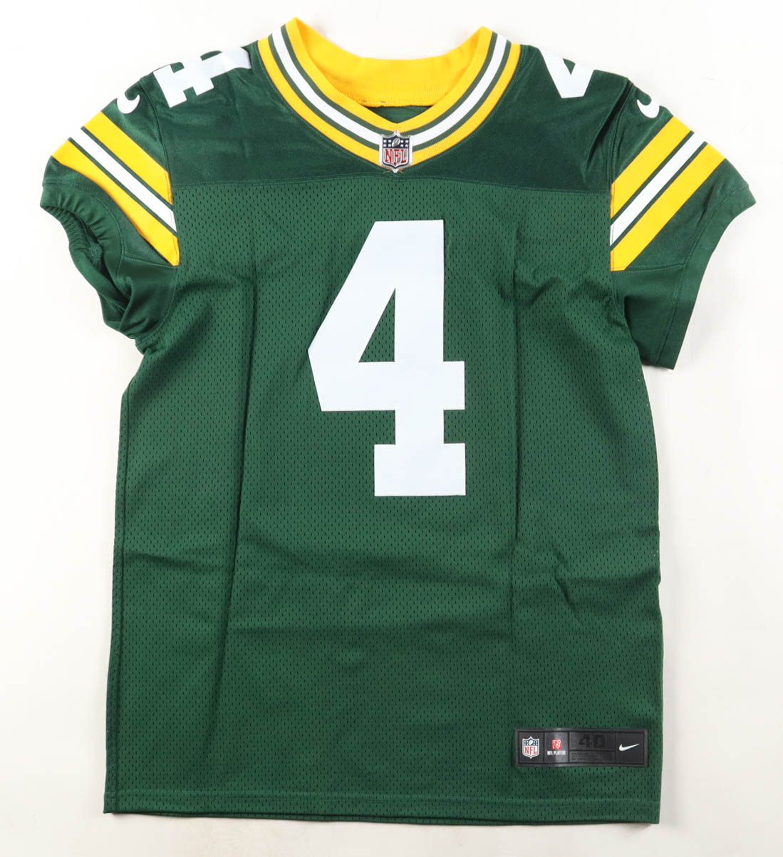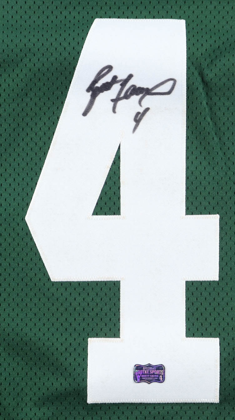 Nike jersey with everything sewn on, size 40. Hand-signed by Brett Favre (Green Bay Packers, HOF). Please note, there is staining on the reverse number. See photos regarding the condition of the item.
