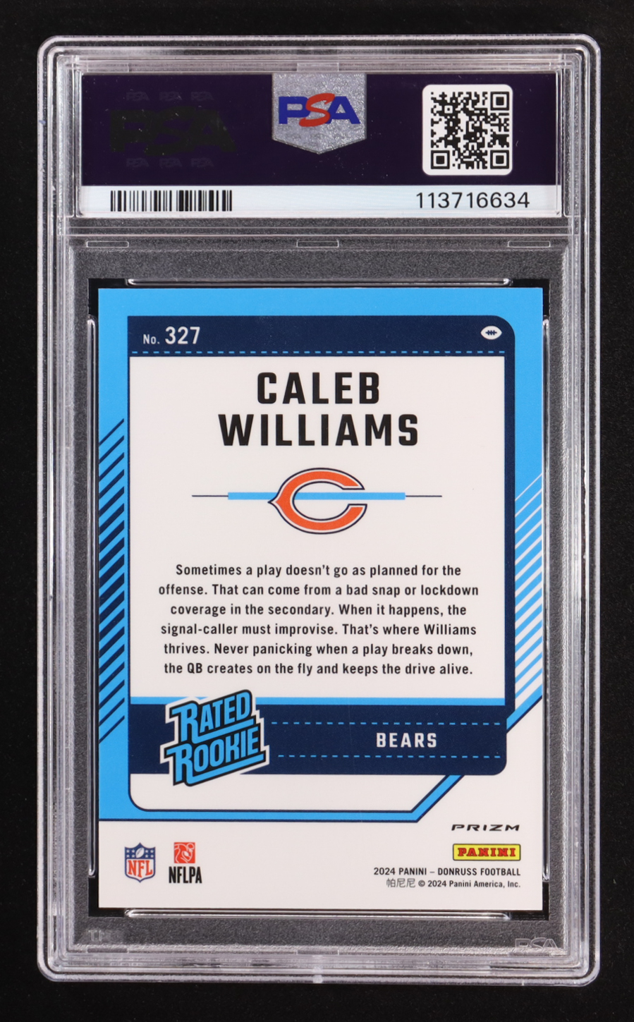 Caleb Williams 2024 Donruss Optic Rated Rookies Preview Pink #327 RC (PSA 10)