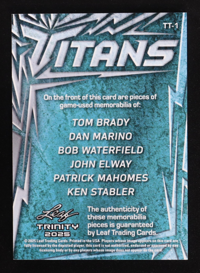 Tom Brady / Dan Marino / Bob Waterfield / John Elway / Patrick Mahomes / Ken Stabler 2025 Leaf Trinity Titans Memorabilia Bronze #TT1 #17/25