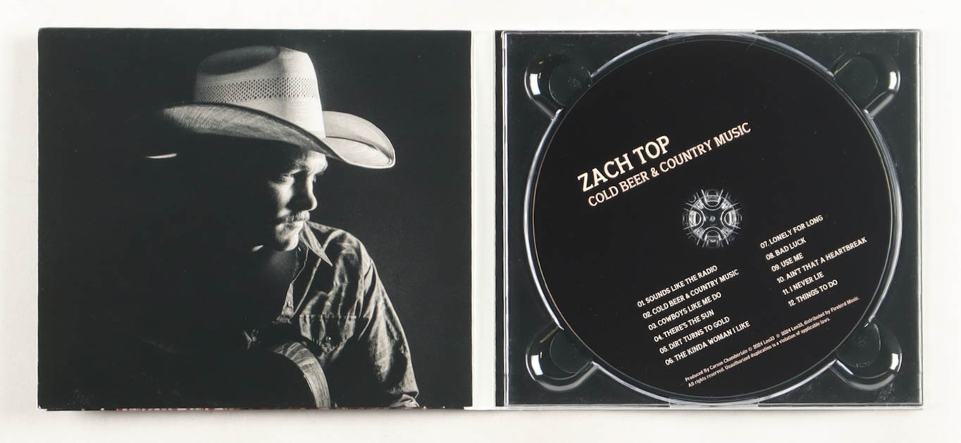 "Cold Beer & Country Music" CD album cover has been hand-signed by Zach Top. Please note, the CD disc is included as shown.
