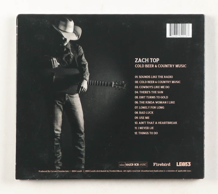 "Cold Beer & Country Music" CD album cover has been hand-signed by Zach Top. Please note, the CD disc is included as shown.