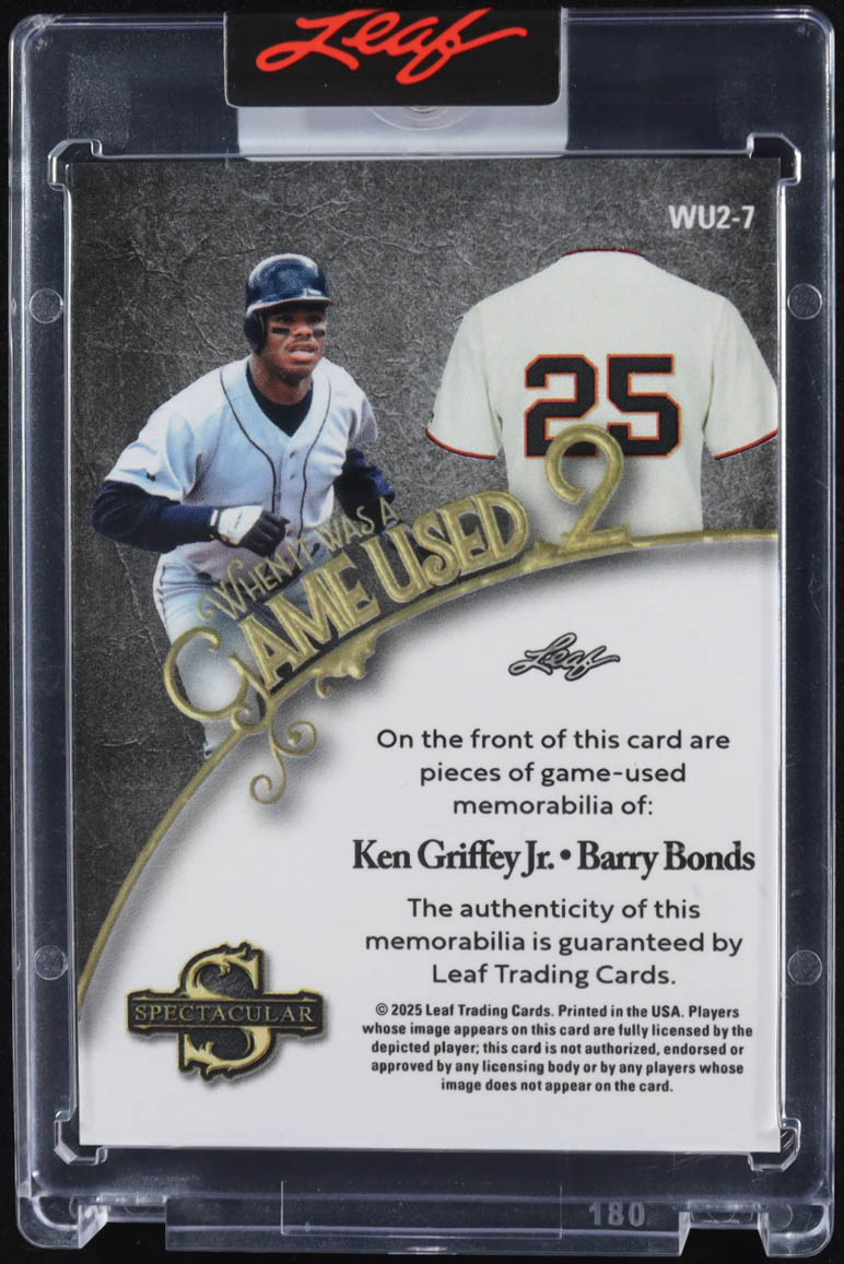 Ken Griffey Jr. / Barry Bonds 2025 Leaf Spectacular When It Was Game Used Dual Jersey Silver #WU2-7 #17/20