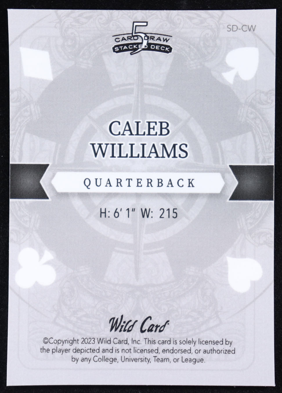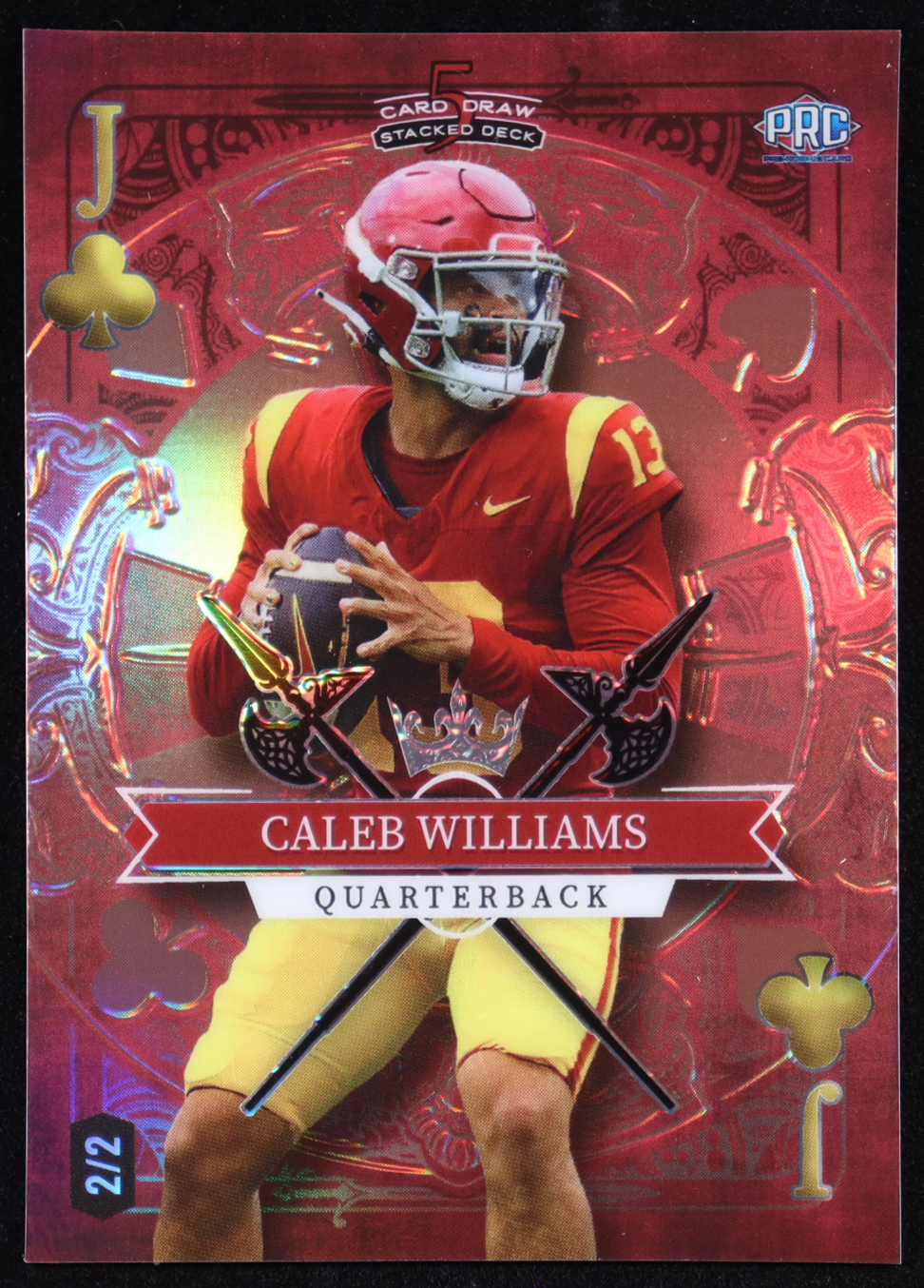Caleb Williams 2023 Wild Card 5 Card Draw Stacked Deck Jack of Clubs Holo Red #CW RC #2/2