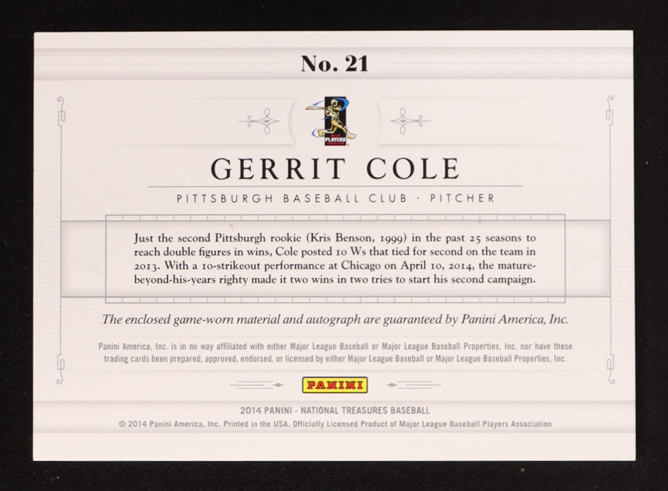 Gerrit Cole 2014 Panini National Treasures Players Choice Signature Die Cuts #21 #18/25