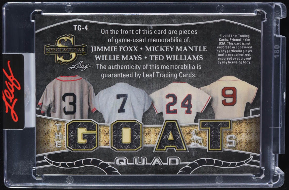 Jimmie Foxx / Mickey Mantle / Willie Mays / Ted Williams 2025 Leaf Spectacular Baseball The GOATs Quad #TG4 #14/15