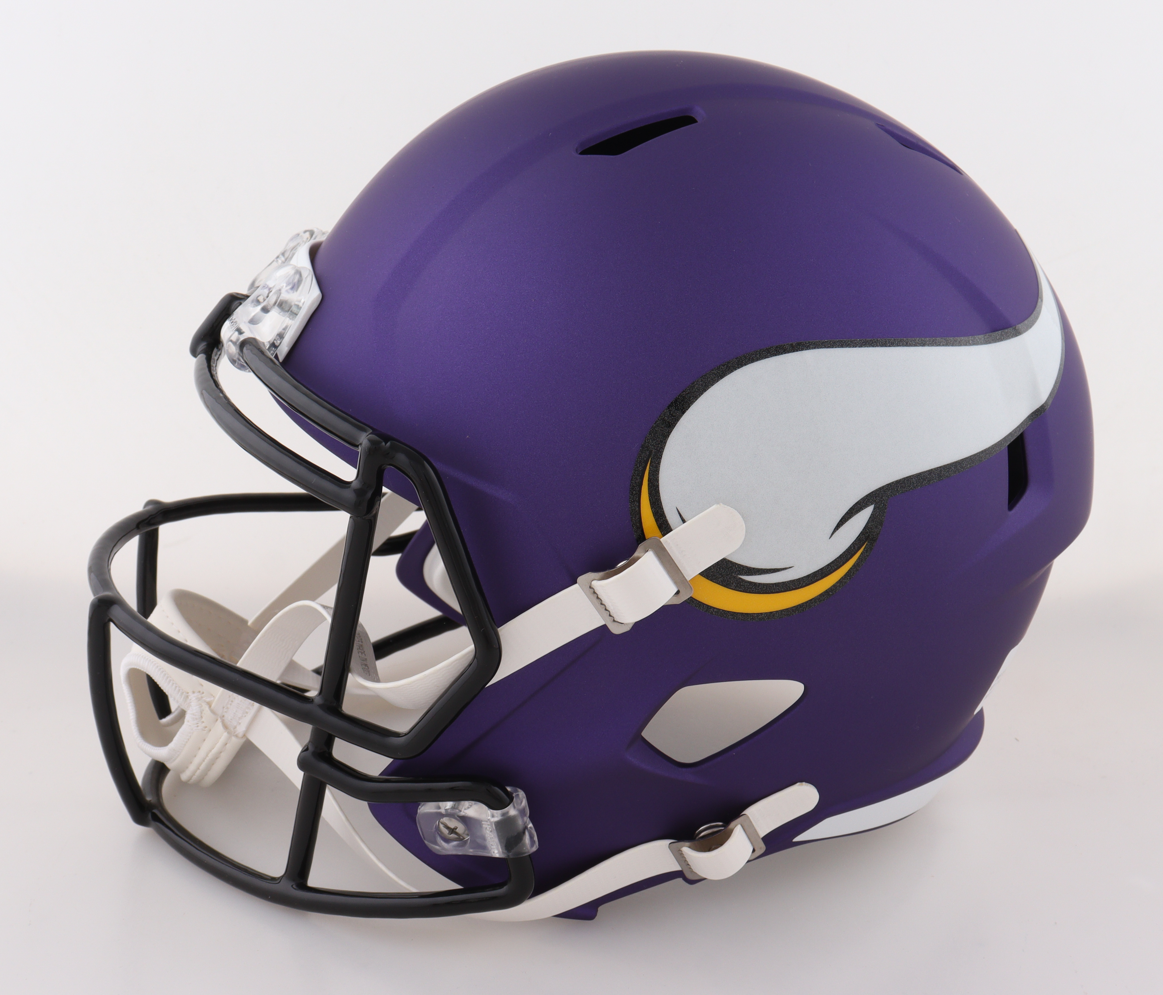 Riddell Minnesota Vikings full-size replica Speed helmet has been hand-signed by Adrian Peterson.
