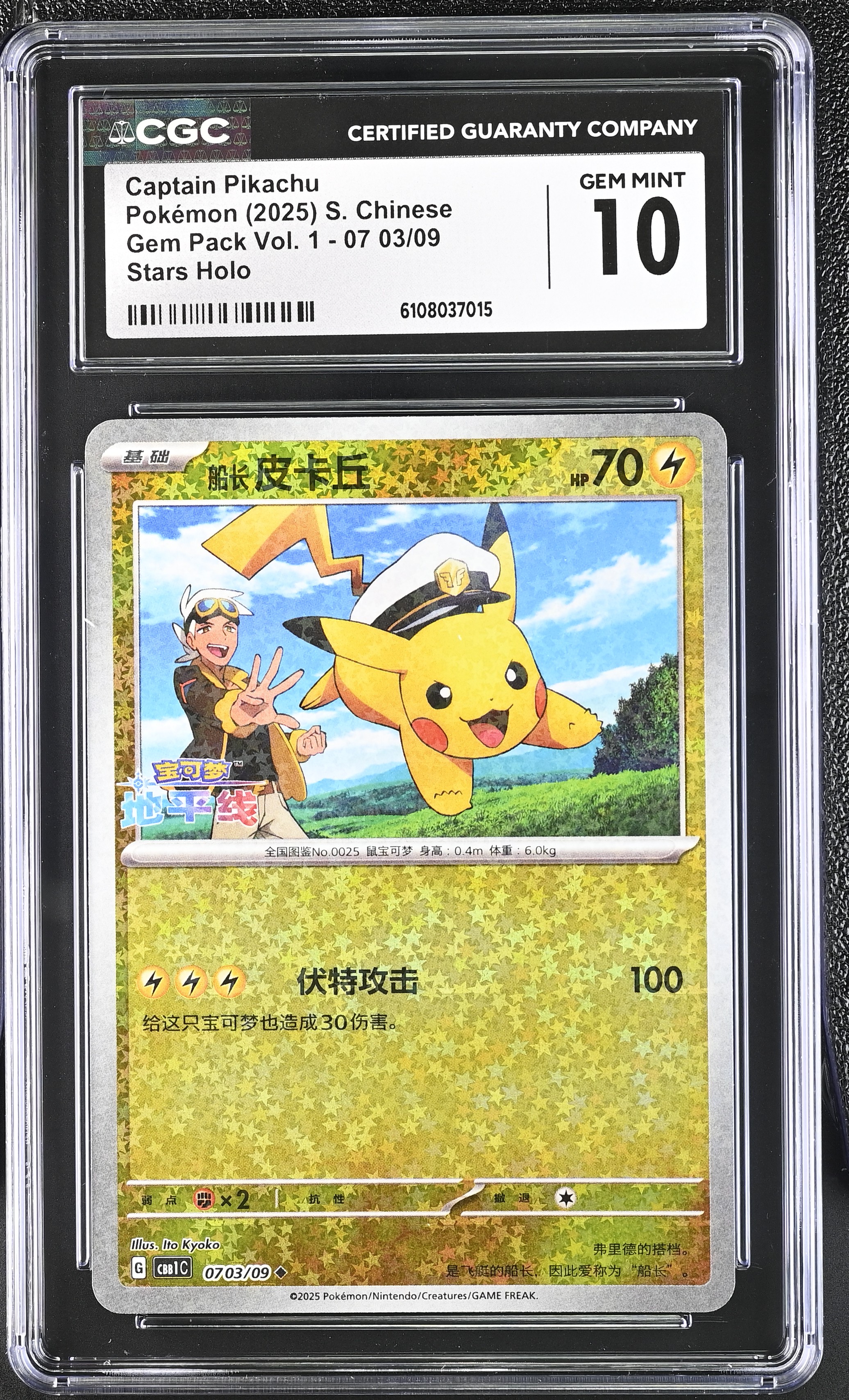 Captain Pikachu 2025 Pokemon TCG Scarlet & Violet Gem Pack Vol.1 Simplified Chinese STAR HOLO #0703 (CGC 10)