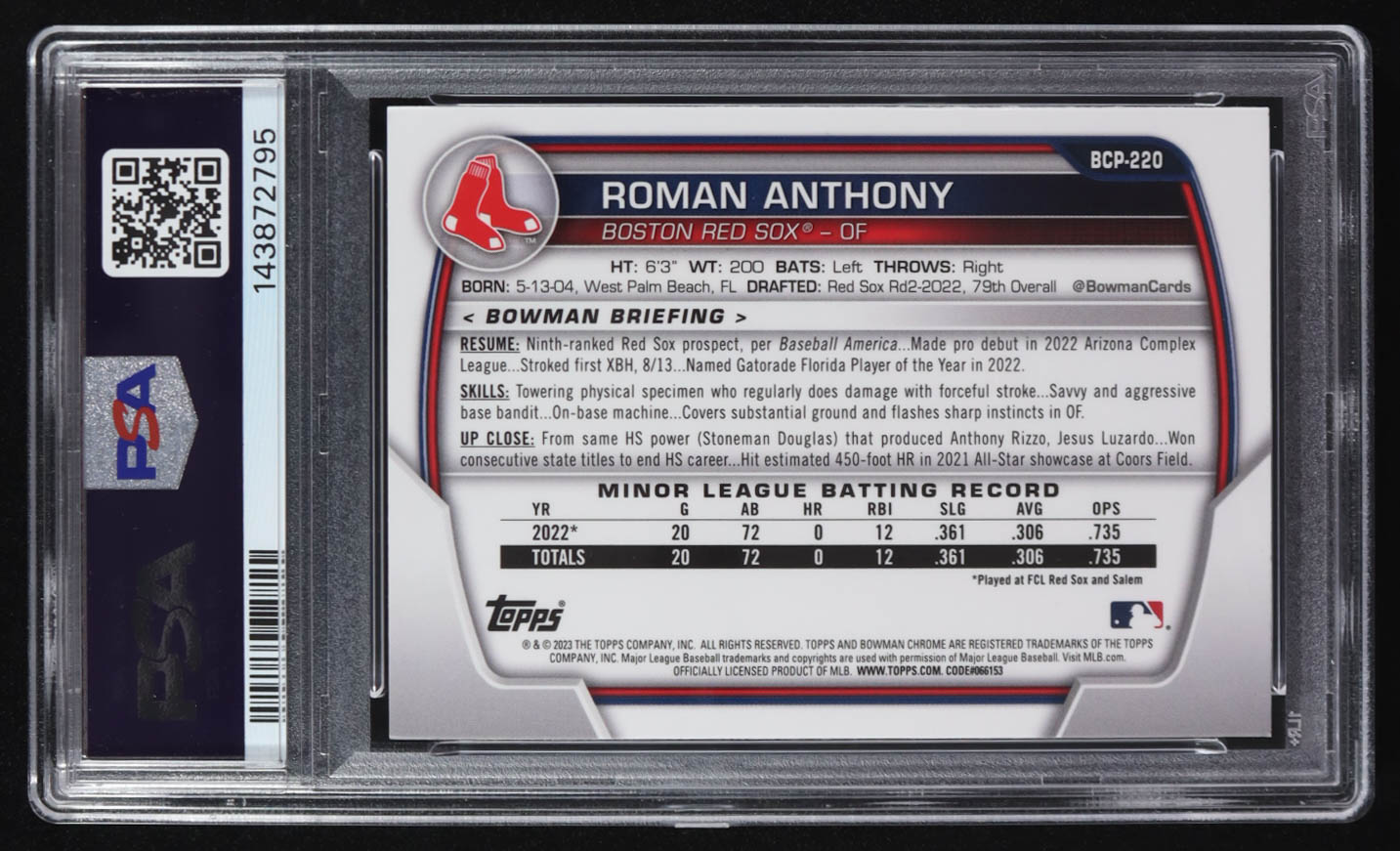 Roman Anthony 2023 Bowman Chrome Prospects Sapphire #BCP-220 RC (PSA 9)
