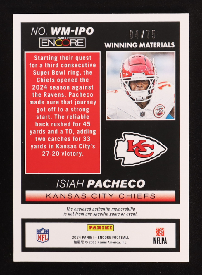 Isiah Pacheco 2024 Panini Encore Winning Materials Red #13 #4/75