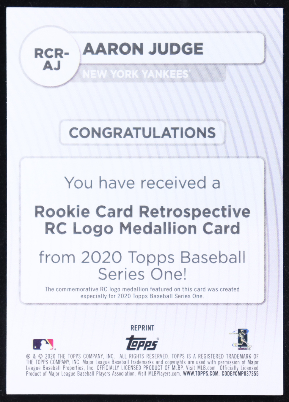 Aaron Judge 2020 Topps Rookie Card Retrospective RC Logo Medallions #RCRAJ