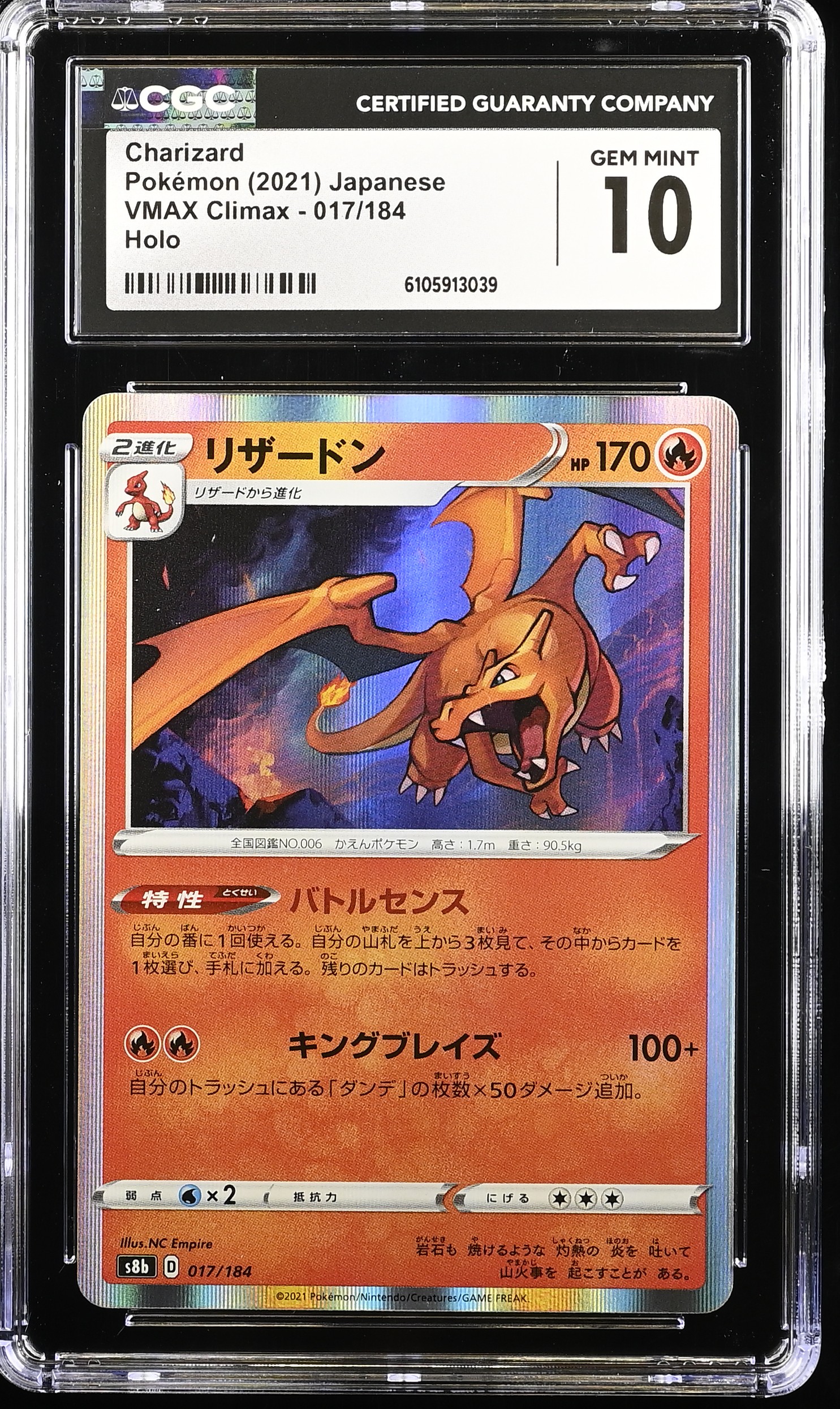 Charizard 2021 Pokemon Sword and Shield VMAX Climax Japanese #17 R Holo (CGC 10)
