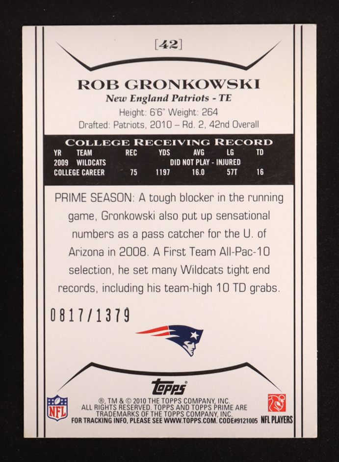Rob Gronkowski 2010 Topps Prime Retail Bronze #42 RC #817/1379