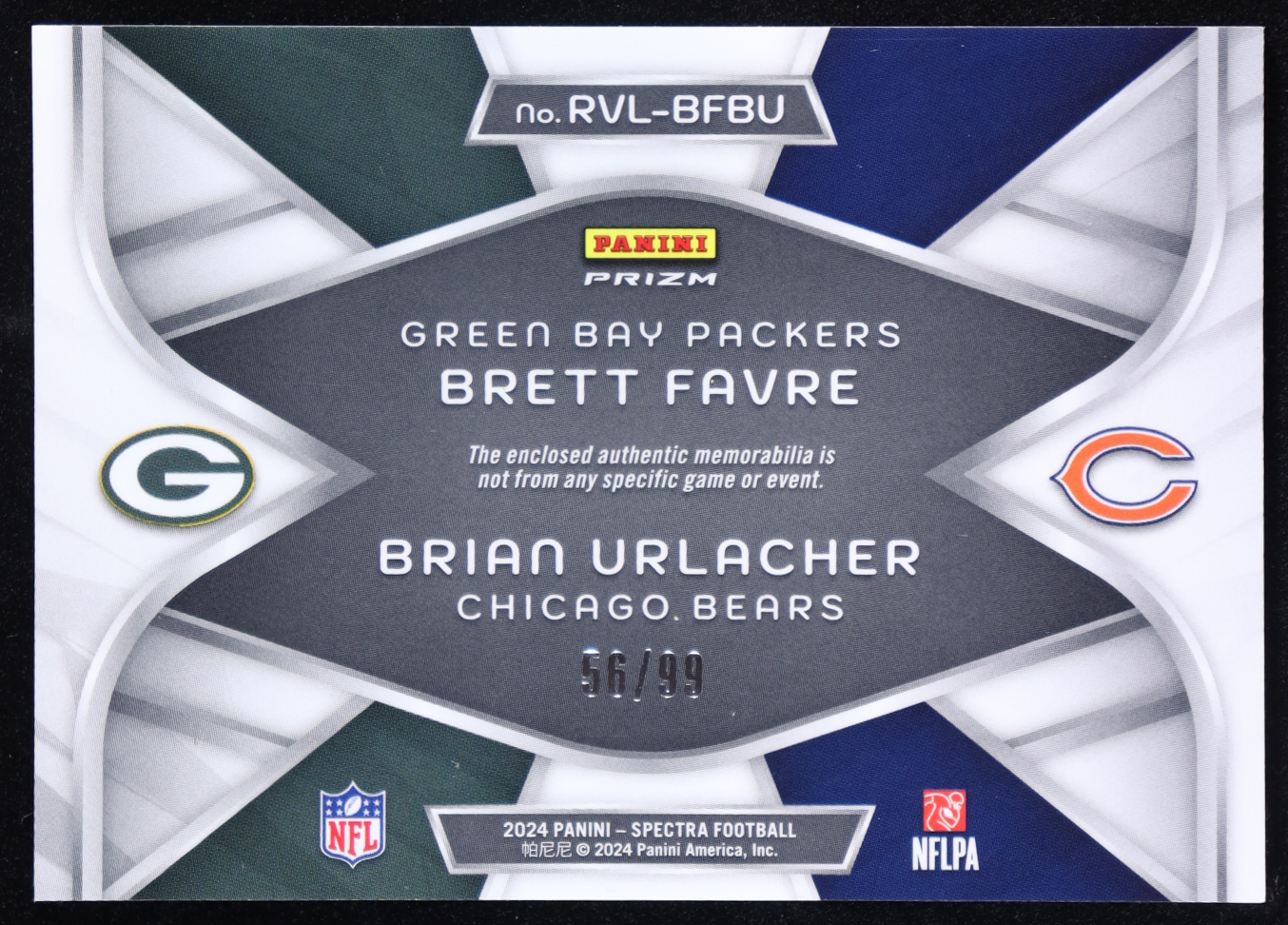 Brett Favre / Brian Urlacher 2024 Panini Spectra Rivals Materials #9 #56/99