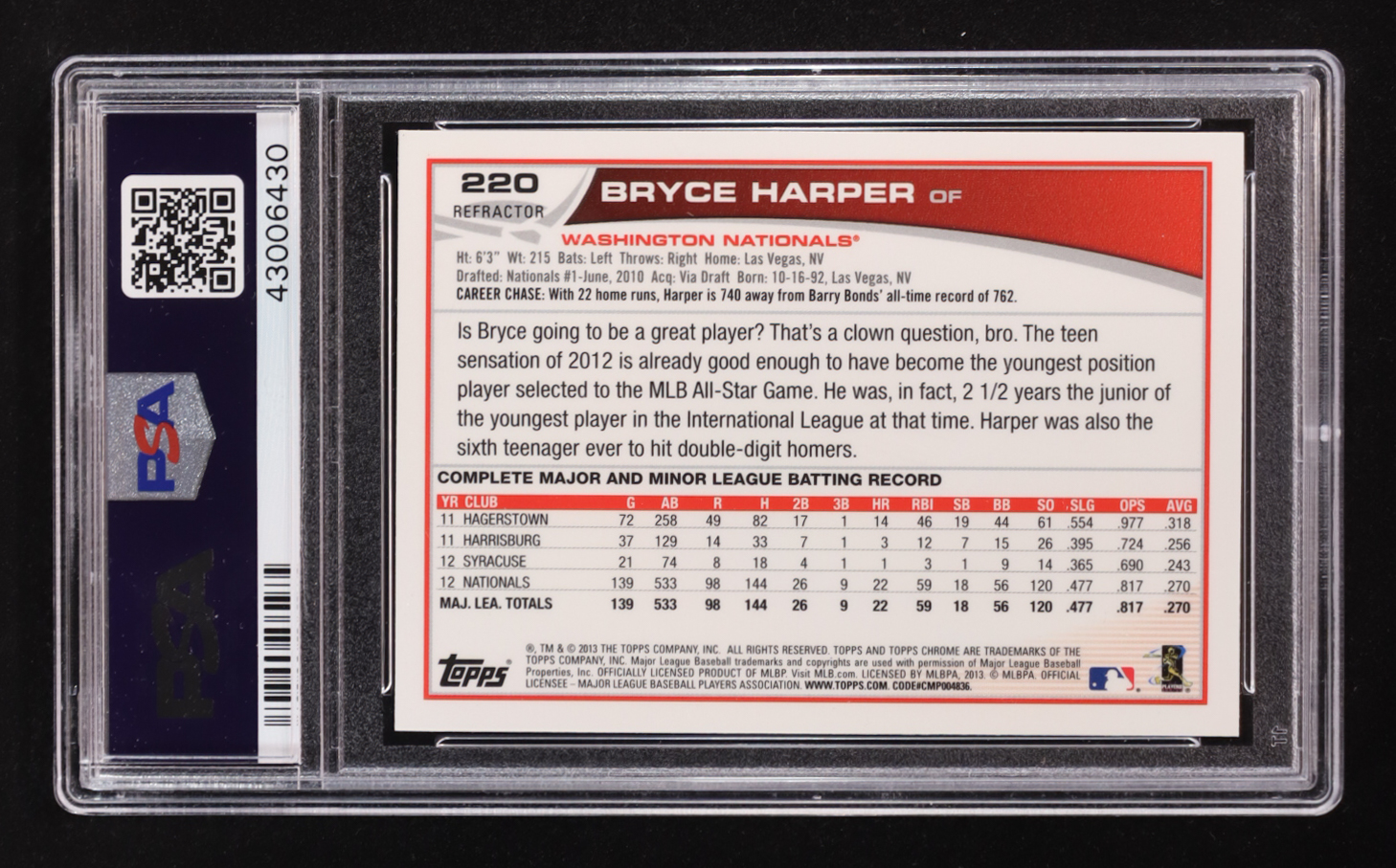Bryce Harper 2013 Topps Chrome Purple Refractors #220 (PSA 10)