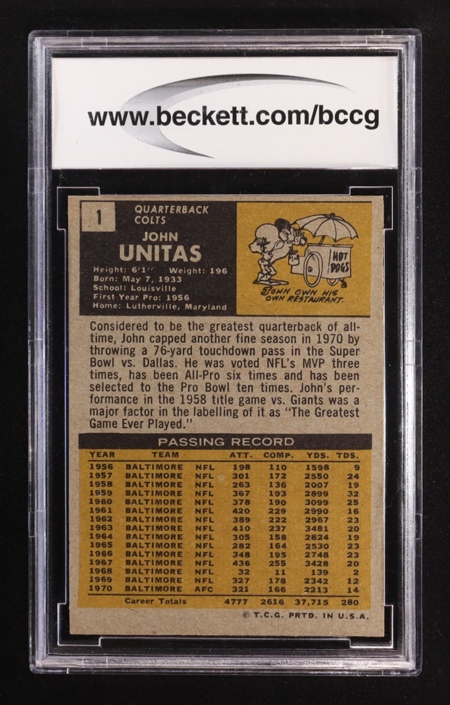 Johnny Unitas 1971 Topps #1 (BCCG 9)