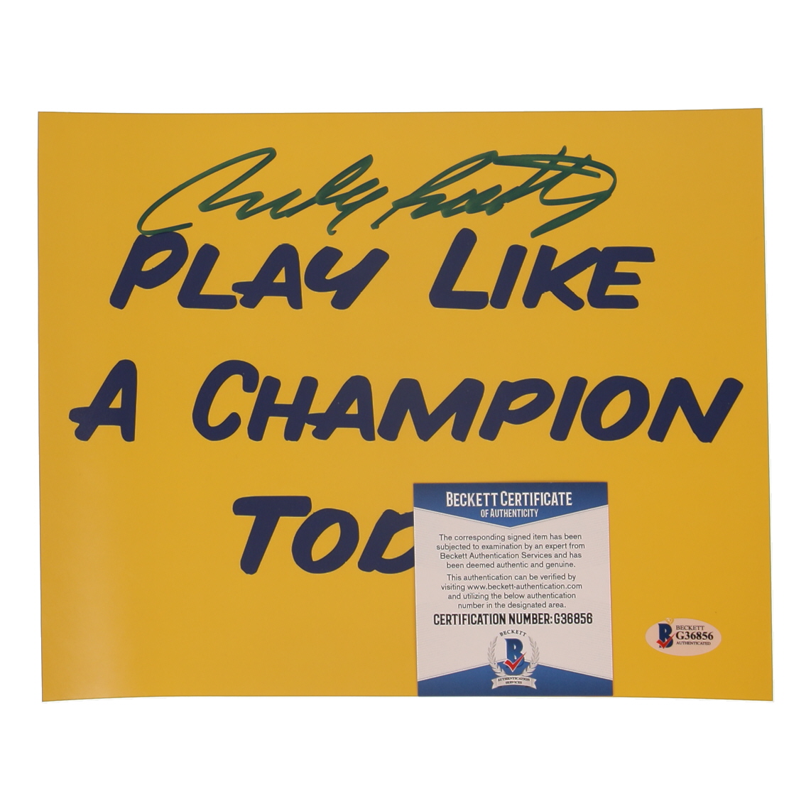 The autograph includes an official Beckett Authentication Services serially-numbered hologram and matching COA for authenticity purposes.