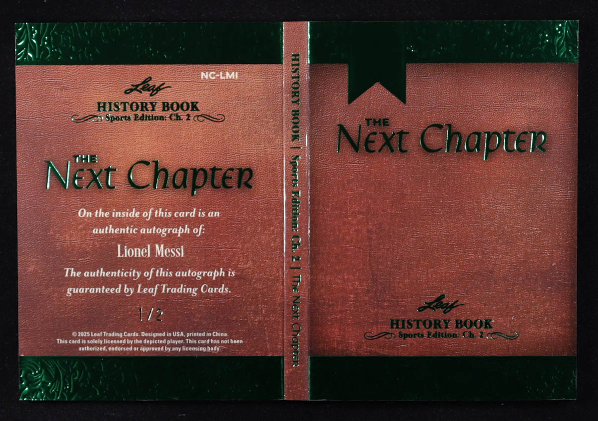 Lionel Messi 2025 Leaf History Book Sports Edition Chapter 2 The Next Chapter Green #NCLM1 #1/2