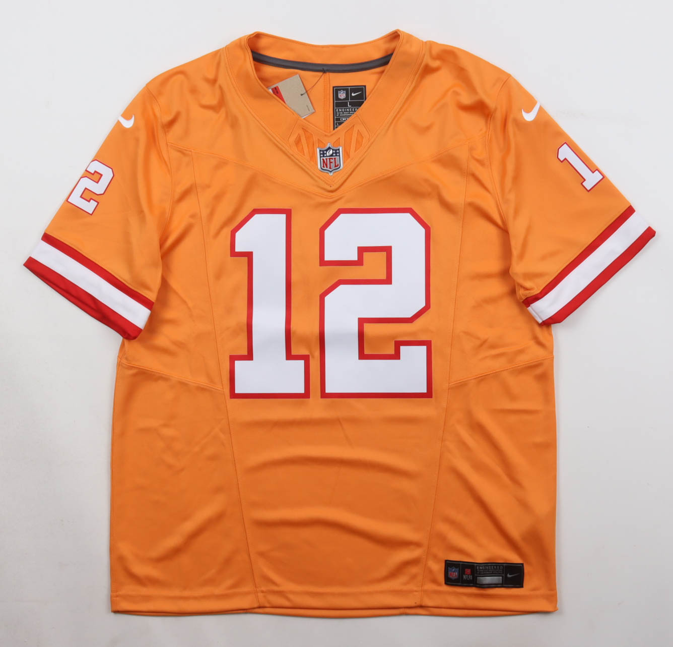 Nike jersey with everything pressed on, size L. Hand-signed by Tom Brady (Tampa Bay Buccaneers).