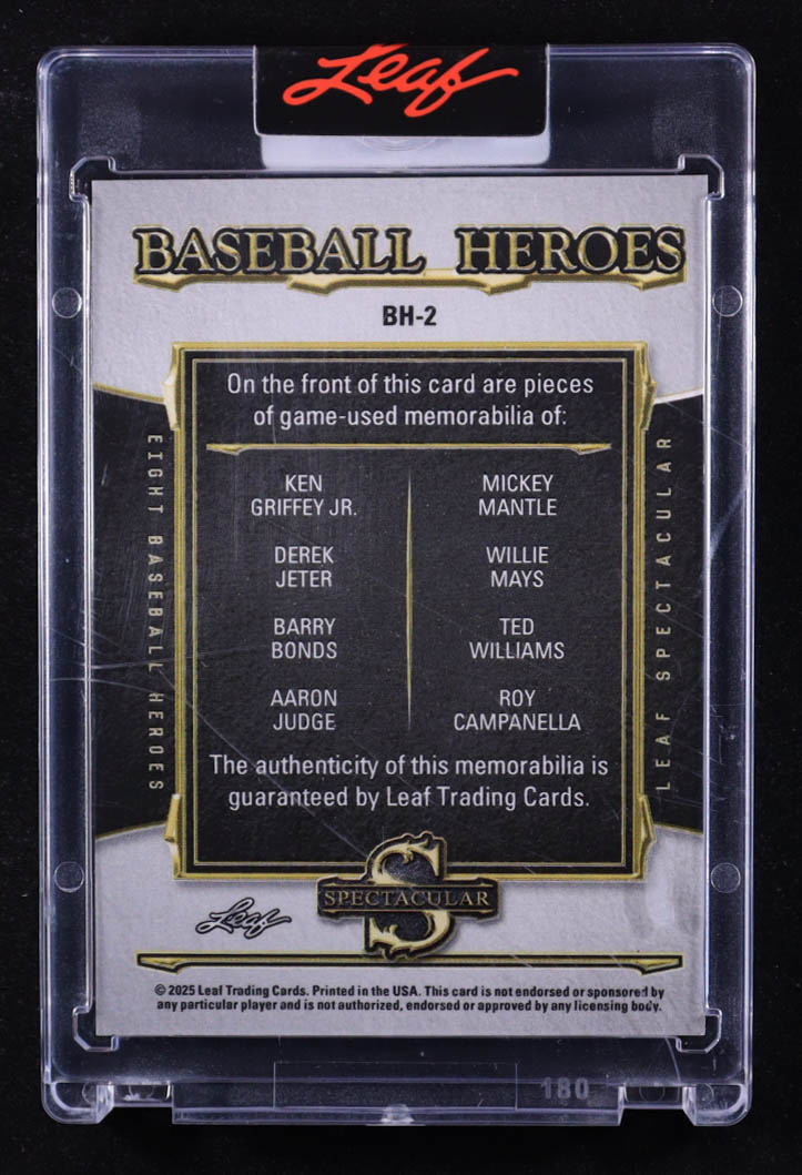 2025 Leaf Spectacular Baseball Heroes Spectrum Purple #BH2 Ken Griffey Jr. / Mickey Mantle / Derek Jeter / Willie Mays / Barry Bonds / Ted Williams / Aaron Judge / Roy Campanella #10/10
